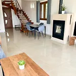 Obiekt w Kalamítsi oferuje patio i balkon, takie udogodnienia jak żelazko z deską do prasowania i klimatyzacja oraz meble takie jak sofa. Almond Villa z kominkiem posiada TV i telewizję wielokanałową. Willa w Kalamítsi oferuje kabinę prysznicową walk-in, oddzielną toaletę i wannę, a także takie udogodnienia jak suszarka do włosów i ręczniki.